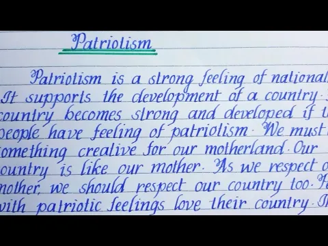 Patriotism is a feeling of love for ones country. It can be expressed in many ways, but the most common way is through writing an essay about your feelings on your country.